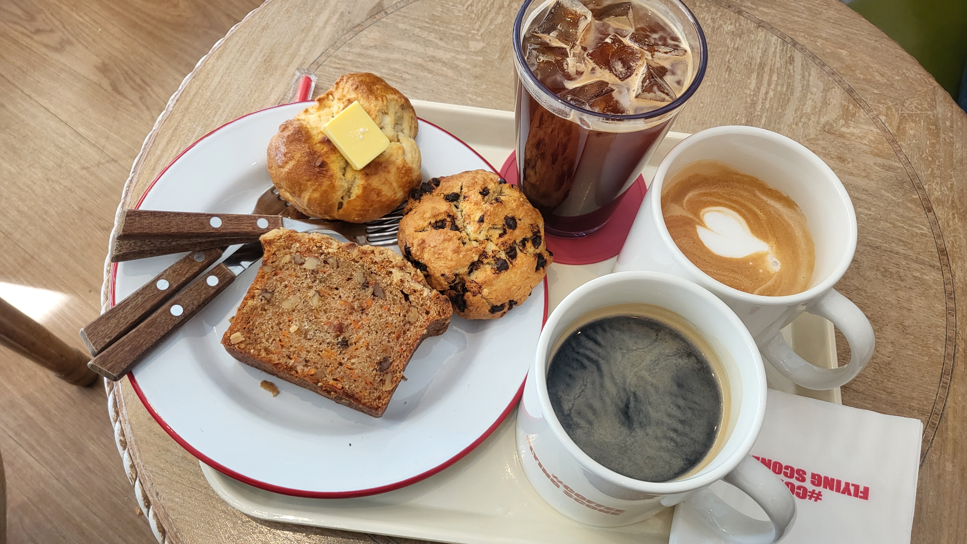 저희는 스콘2개와 당큰케이크, 음료3잔을 주문했습니다.