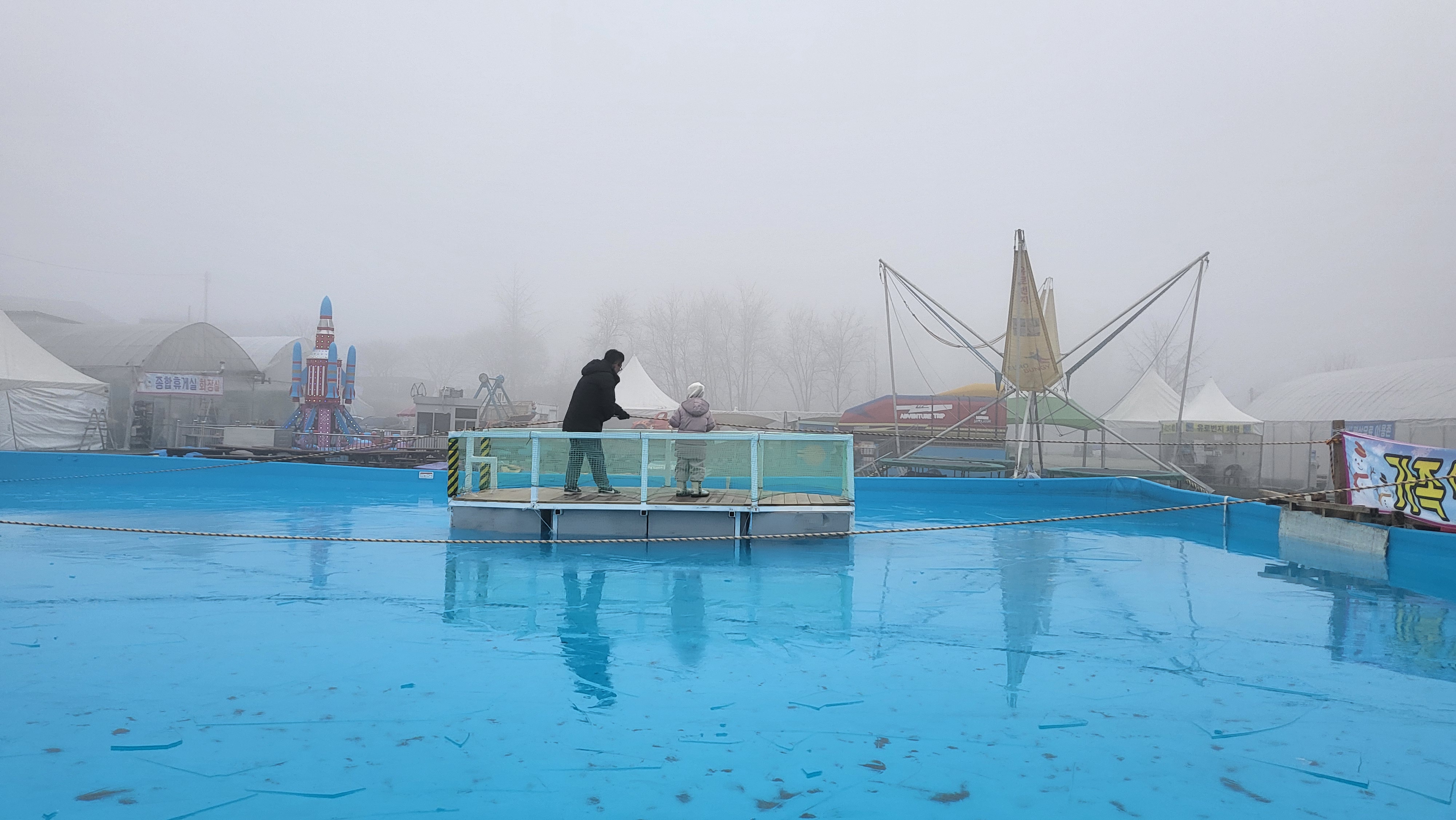 사람이 별로 없어서 바이킹을 아이가 혼자 타야 했는데,