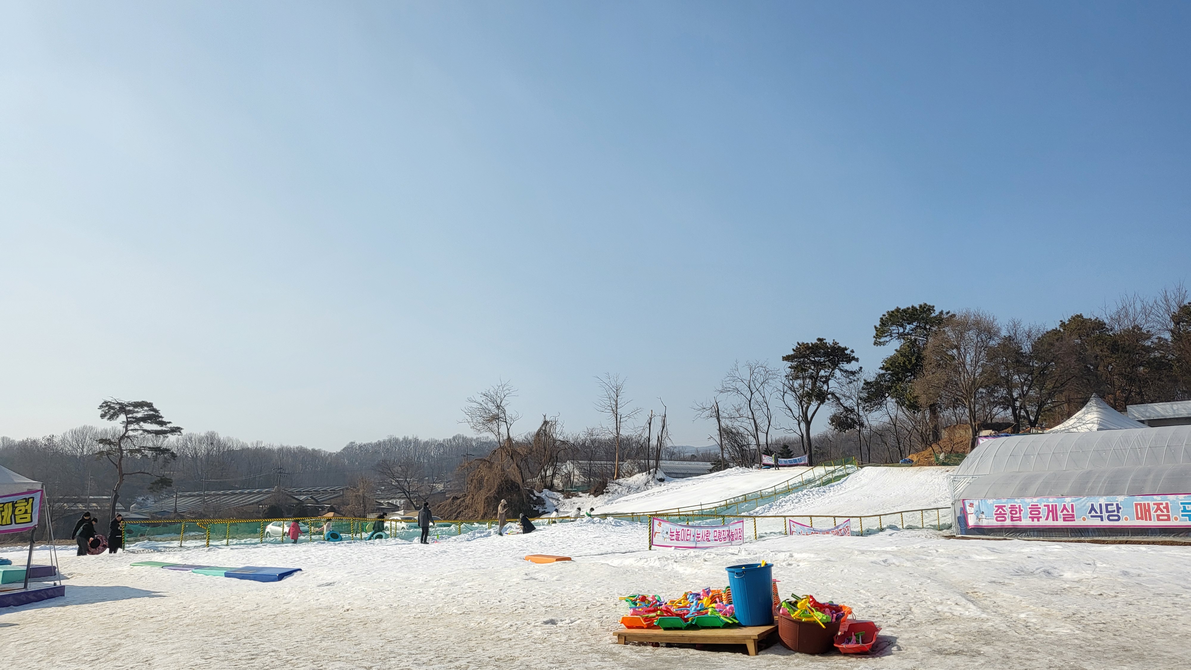 평상에 짐을 두고 바로 눈썰매장으로 향했어요.